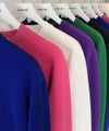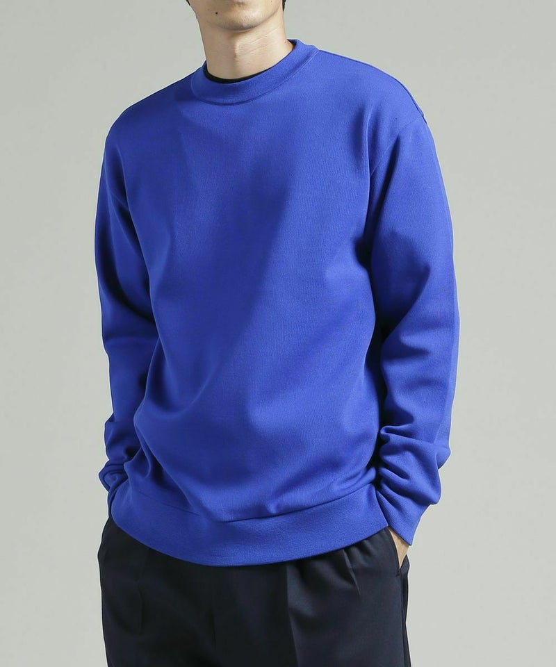 スウェットシャツのデティールをニットアイテムに落とし込んだクルーネックセーター。スムース編みのソフトな肌触りと、しっかりとした生地感が特徴。