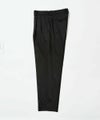 フロントツータックと後ウエストシャーリングにより腰周りにはゆとりを持たせつつ、裾に向かって緩やかな絞りを入れたワイドテーパードシルエット。オーダースーツにも使用される本水牛釦を採用し、細部にまでナチュラルな風合いと高級感を追求しました。適度な肉感のある生地でオールシーズン対応。