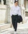 =OUTして着た時に、軽さとシャープさが出て、まじめになりすぎないのが特徴。