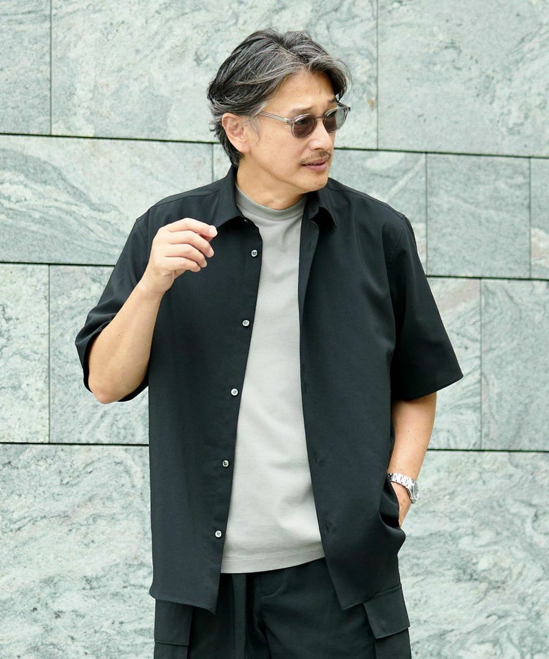 自然なシワ感と麻のようなタッチやストレッチ性を持たせた素材で、昨日と着心地を両立
