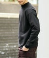首周りは、ジャストフィットするように設計されたモックネック仕様。生地の地の目を横方向にすることで、洗濯後の型崩れを防止。裾の折り返しを広く取り、ブラインドステッチを採用。